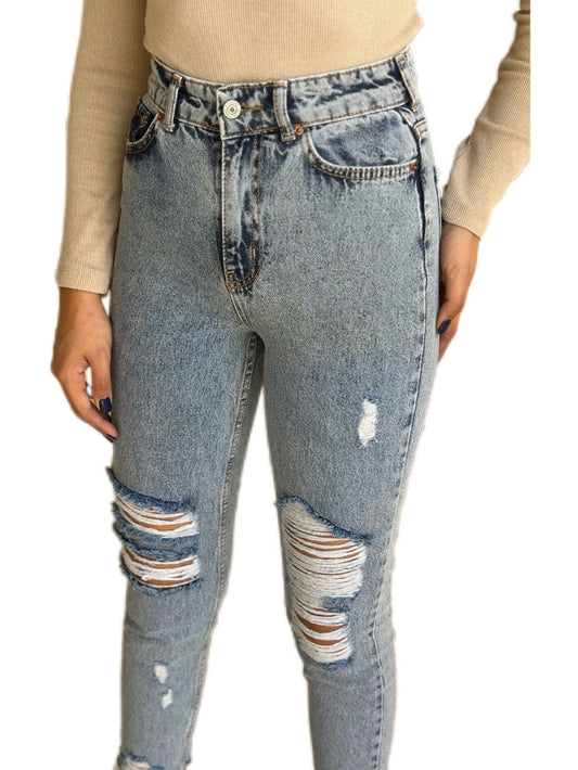 High Waist Ripped Ice Blue Jeans
